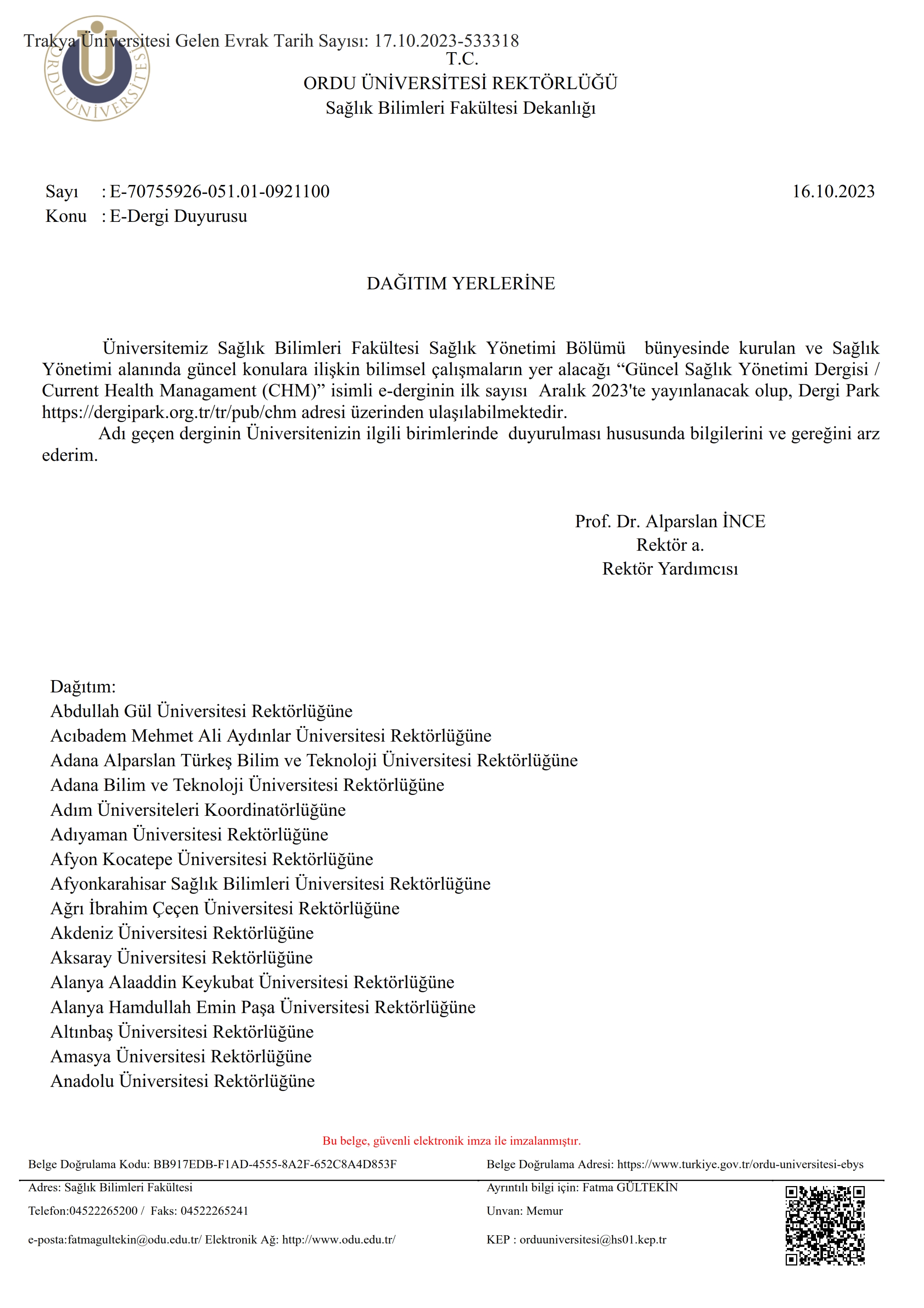 GÜNCEL SAĞLIK YÖNETİMİ DERGİSİ