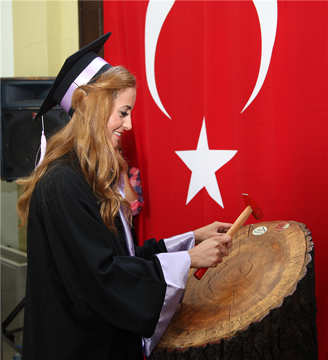 Mezun olan öğrencilere mezuniyet belgelerinin verilmesinin ardından mezuniyet töreni öğrencilerin keplerini havaya atmasıyla son buldu.