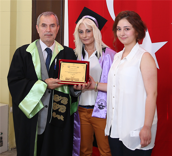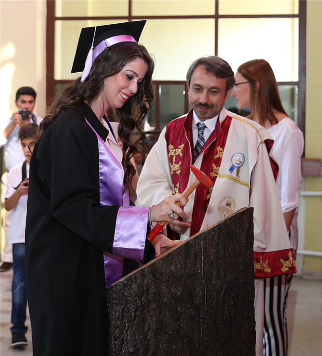 Törende, dereceye giren öğrencilere protokol tarafından plaket takdim edildi. Plaket takdimi sırasında dikkat çeken noktalardan biri, fakülte ikincisi Handan Gürbüz’ün plaketi kızına ithaf etmesi oldu. Plaket takdiminin ardından fakülte birincisi Canan Kolcu mezuniyet kütüğüne arma çaktı.