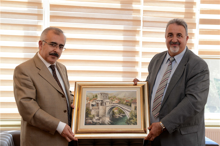 Hersek Neretva Kantonu Eğitim, Bilim, Kültür ve Spor Bakanı Zlatko Hadziomerovic, Hersek Neretva Kantonu İnşaat Bakanı Suad Hasandedic, hukukçu-yazar Senad Hasanagic ve sosyoloji profesörü Yazar Enes Ratkusic’in de aralarında bulunduğu heyet, 31 Mart 2014 tarihinde karşılıklı temaslarda bulunmak üzere Rektör Prof.Dr. Yener Yörük’ü ziyaret etti.