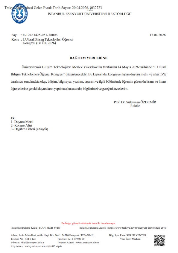 I. ULUSAL BİLİŞİM TEKNOLOJİLERİ ÖĞRENCİ KONGRESİ (BTÖK 2026)