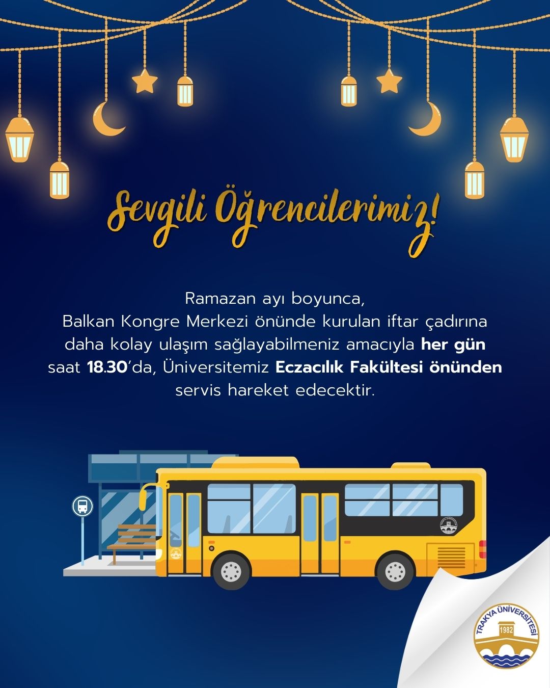 İFTAR ÇADIRINA ÖĞRENCİLERİMİZE YÖNELİK ÜCRETSİZ SERVİS İMKANI