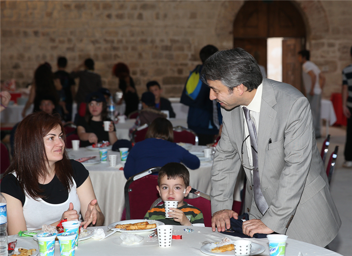 Çocuklarla beraber yemek yiyen rektörümüz Prof.Dr. Yener Yörük, yurt içi ve yurtdışından gelen misafirlerle sohbet etti.