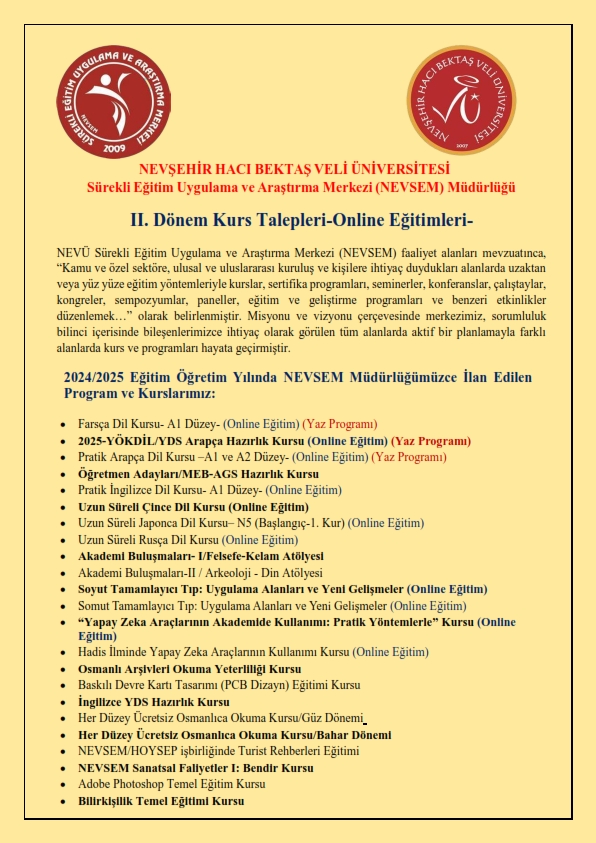 II. DÖNEM KURS TALEPLERİ-ÇEVRİM İÇİ EĞİTİMLERİ