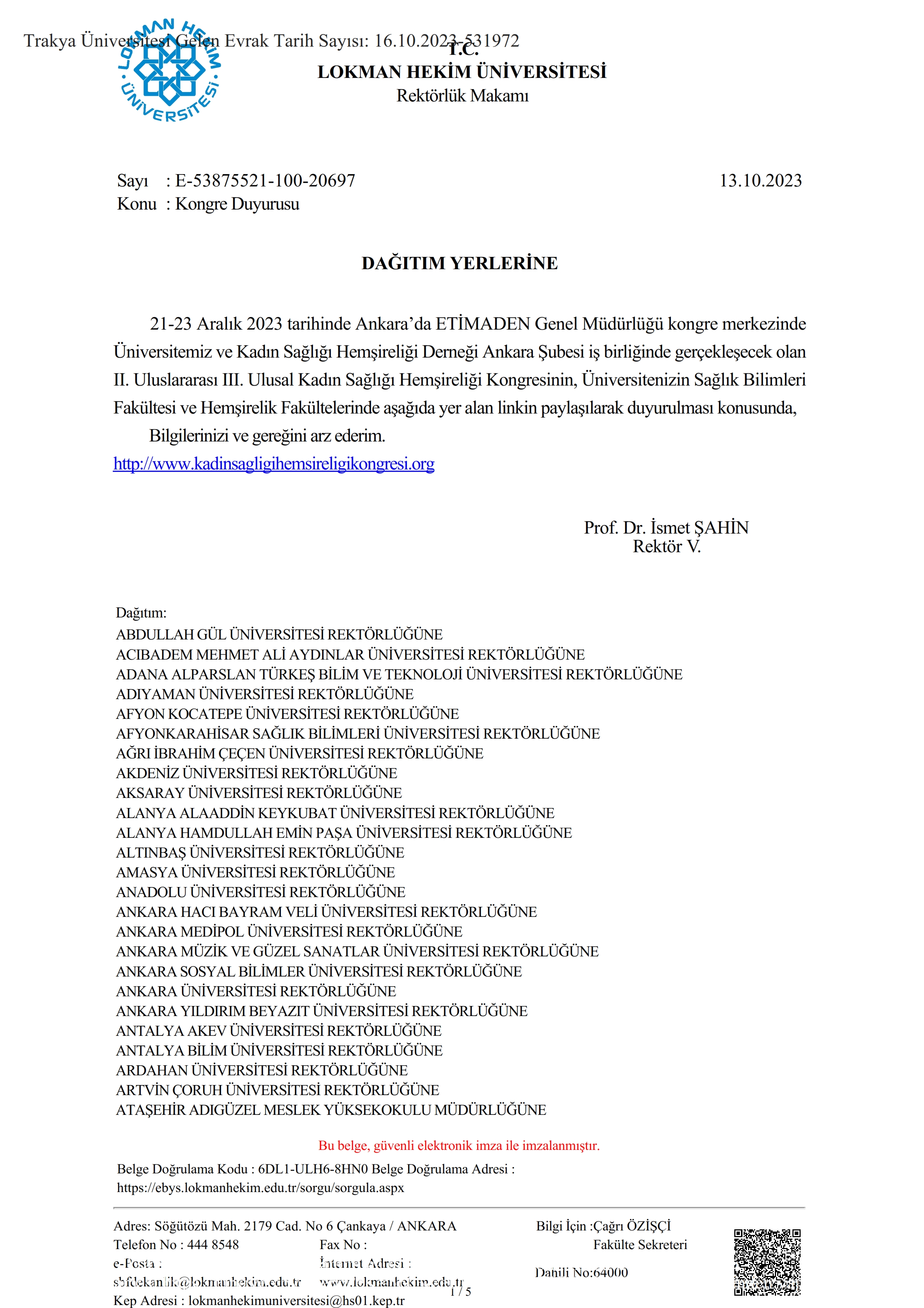 II. ULUSLARARASI III. ULUSAL KADIN SAĞLIĞI HEMŞİRELİĞİ KONGRESİ
