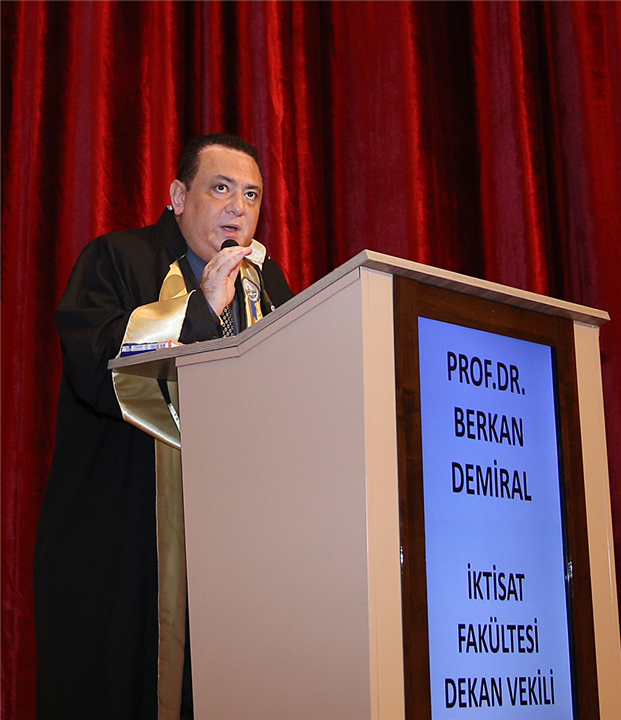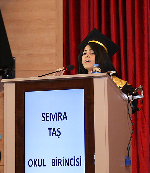 Saygı duruşu ve İstiklâl Marşı’nın ardından başlayan törende, mezuniyet konuşmasını fakülte birincisi Semra Taş yaptı. İktisadi ve İdari Bilimler Fakültesi Dekan Vekili Prof. Dr. Berkan Demiral konuşmasında öğrencileri ve ailelerini kutlayarak mezun öğrencilere başarılar diledi.