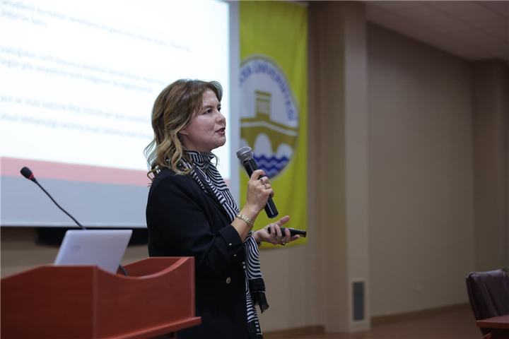 İktisadi ve İdari Bilimler Fakültesi Dekanı Prof. Dr. Cemile Arıkoğlu Ündücü, Fakülte hakkında bilgi vererek başladığı konuşmasında, etik farkındalığı yüksek bireyler yetiştirmenin temel amaçları olduğunu vurgulayarak “Bugünün dünyası dünden farklı olduğu gibi yarının dünyası da farklı olacaktır. Misyonumuz, yenilikçi eğitim kalitesiyle öğrencilerimizi çağa uyum sağlayan bireyler olarak yetiştirmektir.” dedi. Ayrıca Ündücü, Gazze’de devam eden insan hakları ihlallerinin sadece bölgenin değil, herkesin sorumluluğu olduğunu belirtti ve bu kapsamda, konuya dair değerli bilgiler paylaşacak olan Prof. Dr. Çağla Gül Yesevi’yi fakültede ağırlamaktan duyduğu memnuniyeti dile getirdi.