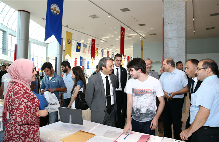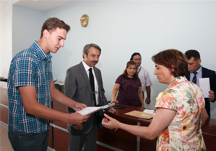 Rektörümüz tarafından kaydı gerçekleştirilen Mühendislik Fakültesi, Elektronik Mühendisliği bölümü öğrencisi Mert Zogo öğrenci kimlik belgesini Rektörümüzden aldı. Ardından Rektörümüz kayıt için oluşturulan stantları gezerek öğrenciler ve veliler ile konuştu.