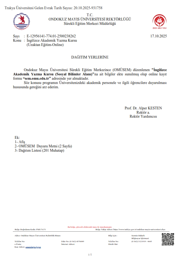 İNGİLİZCE AKADEMİK YAZMA KURSU (UZAKTAN EĞİTİM-ONLİNE)