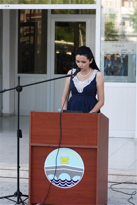 Törene Rektör Prof.Dr. Yener Yörük, İpsala Kaymakamı Mehmet Ali Gürbüz, İpsala Belediye Başkanı Mehmet Kerman, kamu kurum ve kuruluşlar ile sivil toplum örgütlerinin temsilcileri ve öğrenci velileri katıldı. Saygı duruşu ve İstiklal Marşı’nın okunması ile başlayan törenin ilk konuşmasını Elektronik Teknolojisi Programı öğrencisi ve okul birincisi Muhammed Ali Meral yaptı.