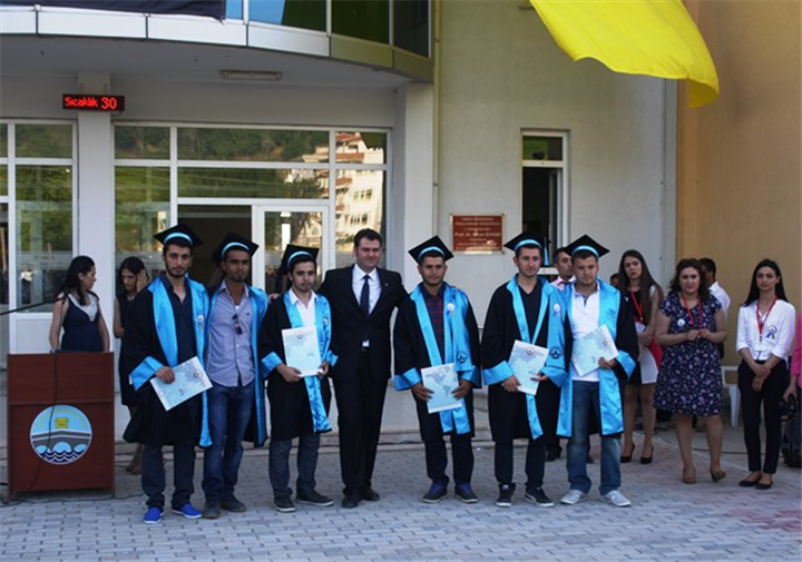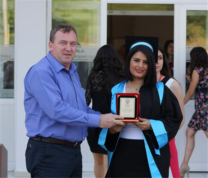 Tören, mezun öğrencilerin ödülleri ve başarı belgelerinin protokol tarafından öğrencilere takdim edilmesinin ardından meslek andının okunmasıyla son buldu.