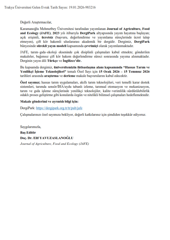"JOURNAL OF AGRİCULTURE, FOOD AND ECOLOGY (JAFE)