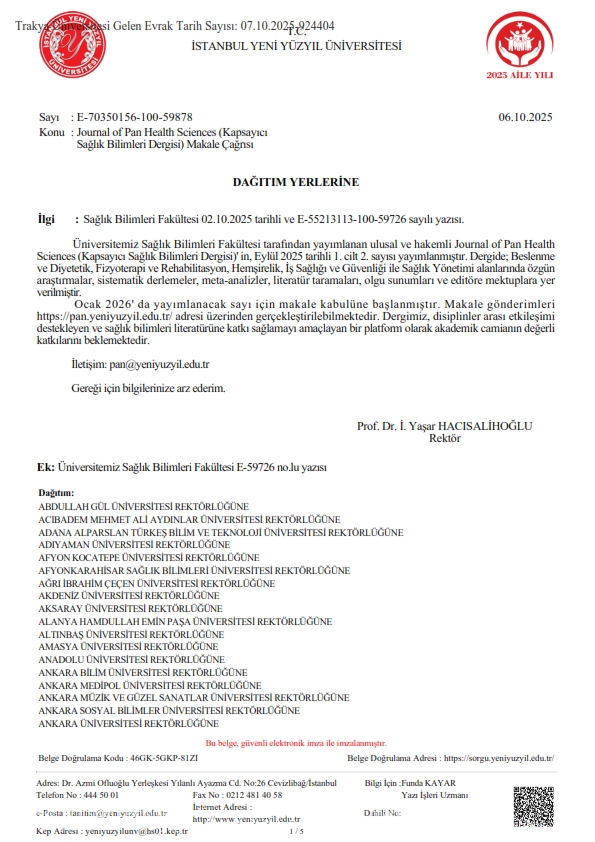 JOURNAL OF PAN HEALTH SCİENCES (KAPSAYICI SAĞLIK BİLİMLERİ DERGİSİ) MAKALE ÇAĞRISI