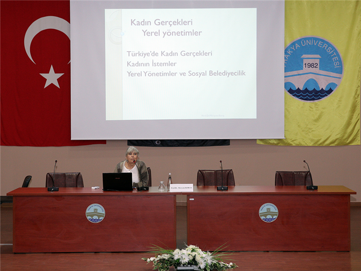 TÜKSAM Müdürü Yrd. Doç. Dr. Boyacıoğlu’nun açılış konuşmasından sonra Prof. Dr. Meryem KORAY’ın “Kadın ve Yerel Yönetimler” konulu konferansı gerçekleştirildi.