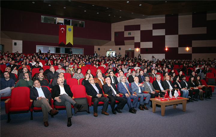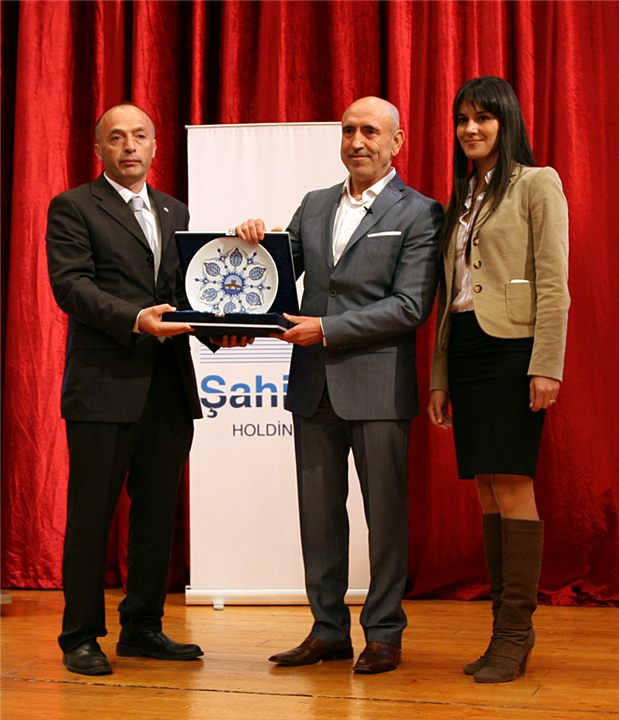 Etkinlik sonunda Kariyer Merkezi Sorumlusu Prof. Dr. Yüksel Bayrak, Kemal Şahin'e üniversitemizin tabağını takdim etti.
