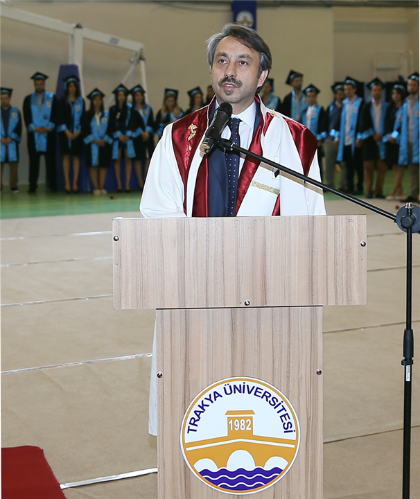Rektör Prof.Dr. Yener Yörük, mezun olan öğrencileri ve ailelerini tebrik ederek, Trakya Üniversitesi olarak öğrencilerin “trakya.edu.tr” uzantılı e-mail hesaplarını, mezuniyetten sonra da kullanabileceklerini söyledi. Açılış konuşmalarının ardından, ulusal ve uluslar arası spor müsabakalarında dereceye giren öğrencilere protokol tarafından ödülleri verildi. Mezuniyet töreni, mezun öğrencilerin ödülleri ve başarı belgelerinin protokol tarafından öğrencilere takdim edilmesi ardından meslek andının okunması ardından ile son buldu.