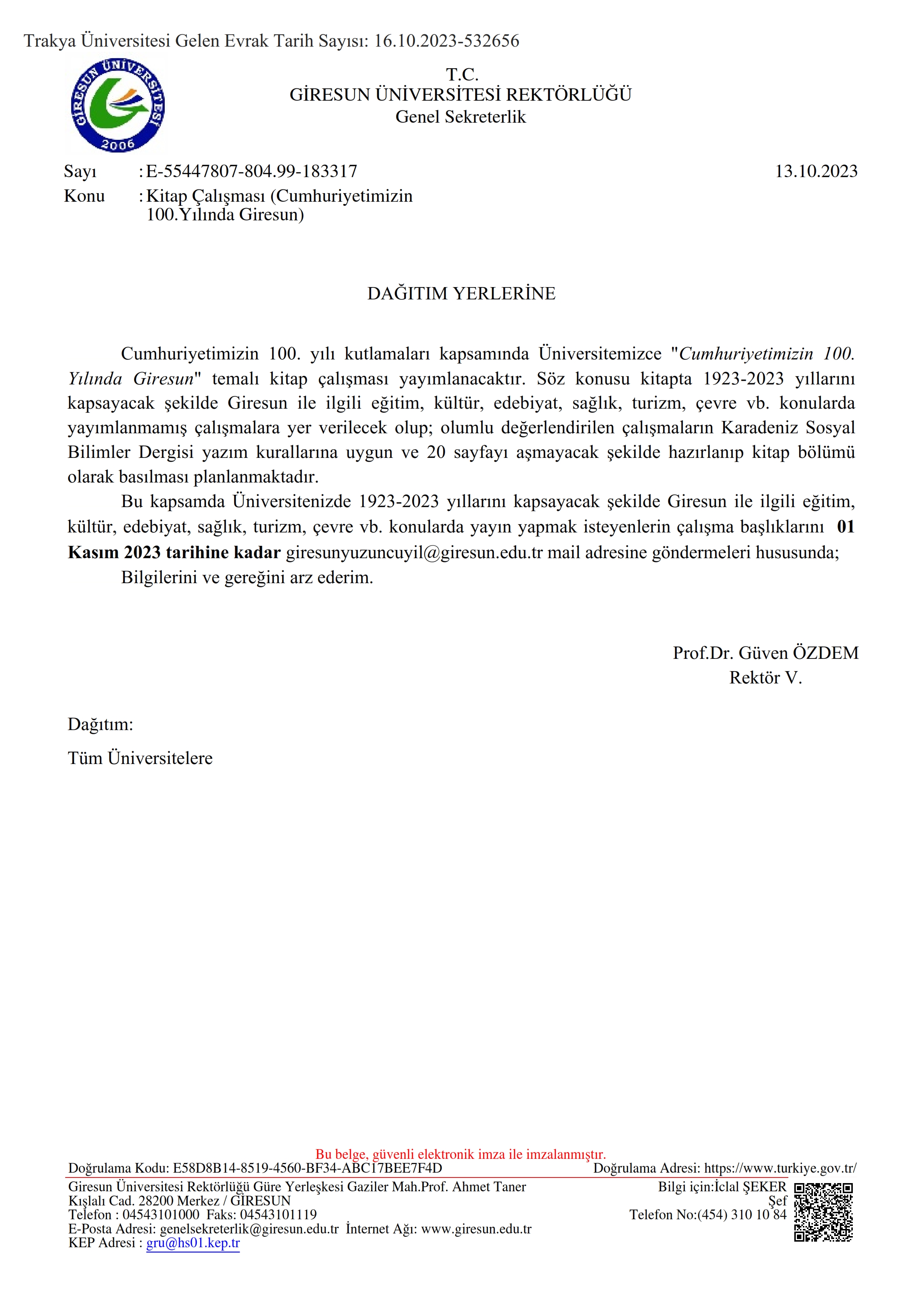 KİTAP ÇALIŞMASI (CUMHURİYETİMİZİN 100.YILINDA GİRESUN)