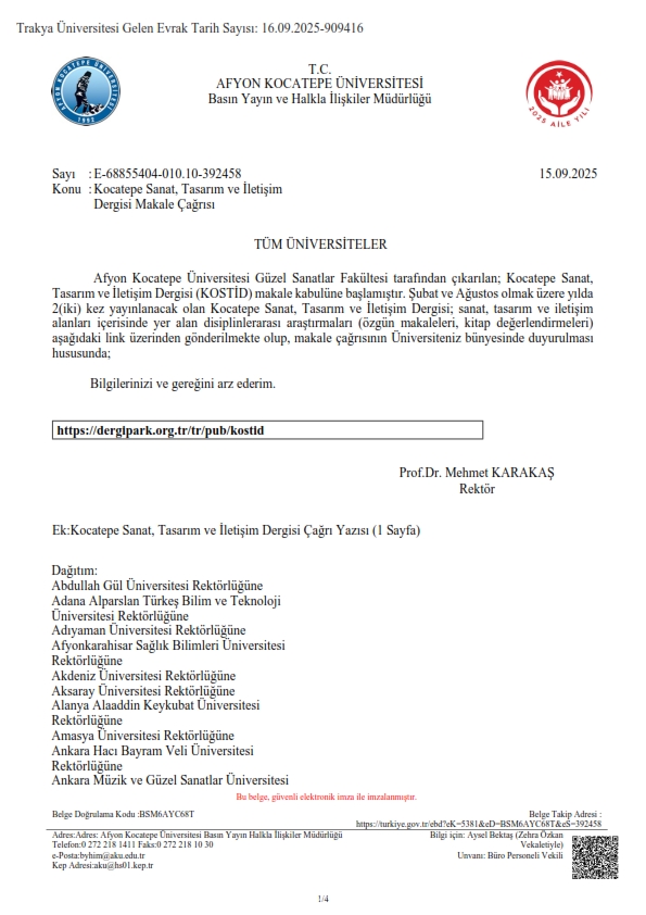 KOCATEPE SANAT, TASARIM VE İLETİŞİM DERGİSİ MAKALE ÇAĞRISI