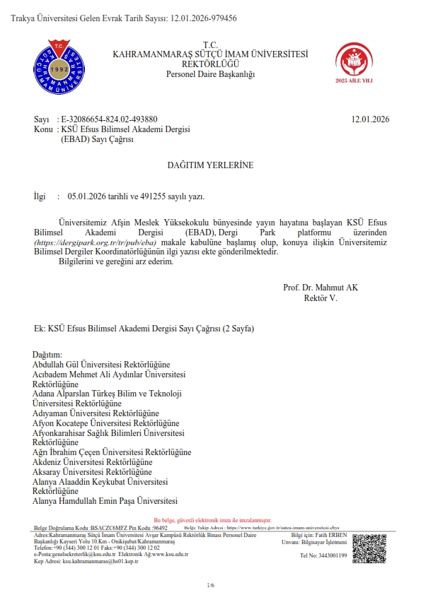 KSÜ EFSUS BİLİMSEL AKADEMİ DERGİSİ (EBAD) SAYI ÇAĞRISI