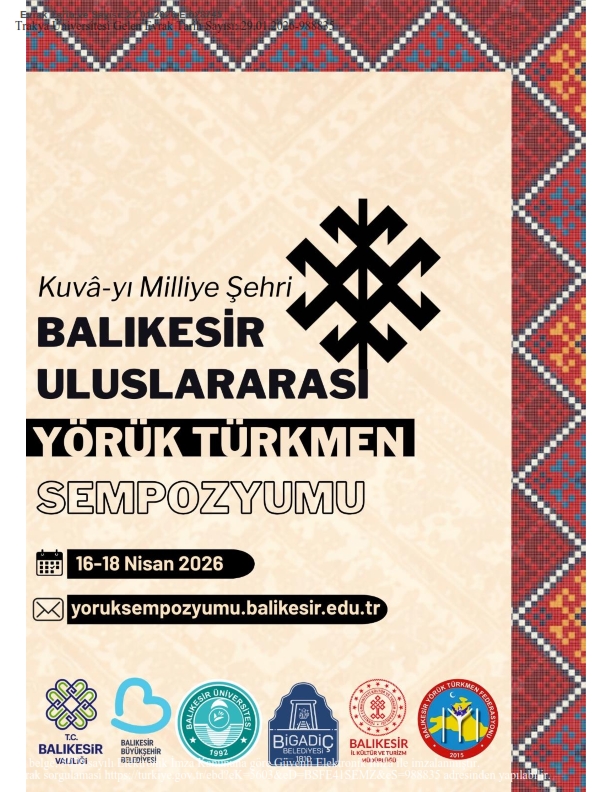 "KUVAYI MİLLİYE ŞEHRİ BALIKESİR: ULUSLARARASI YÖRÜK TÜRKMEN SEMPOZYUMU" DUYURUSU