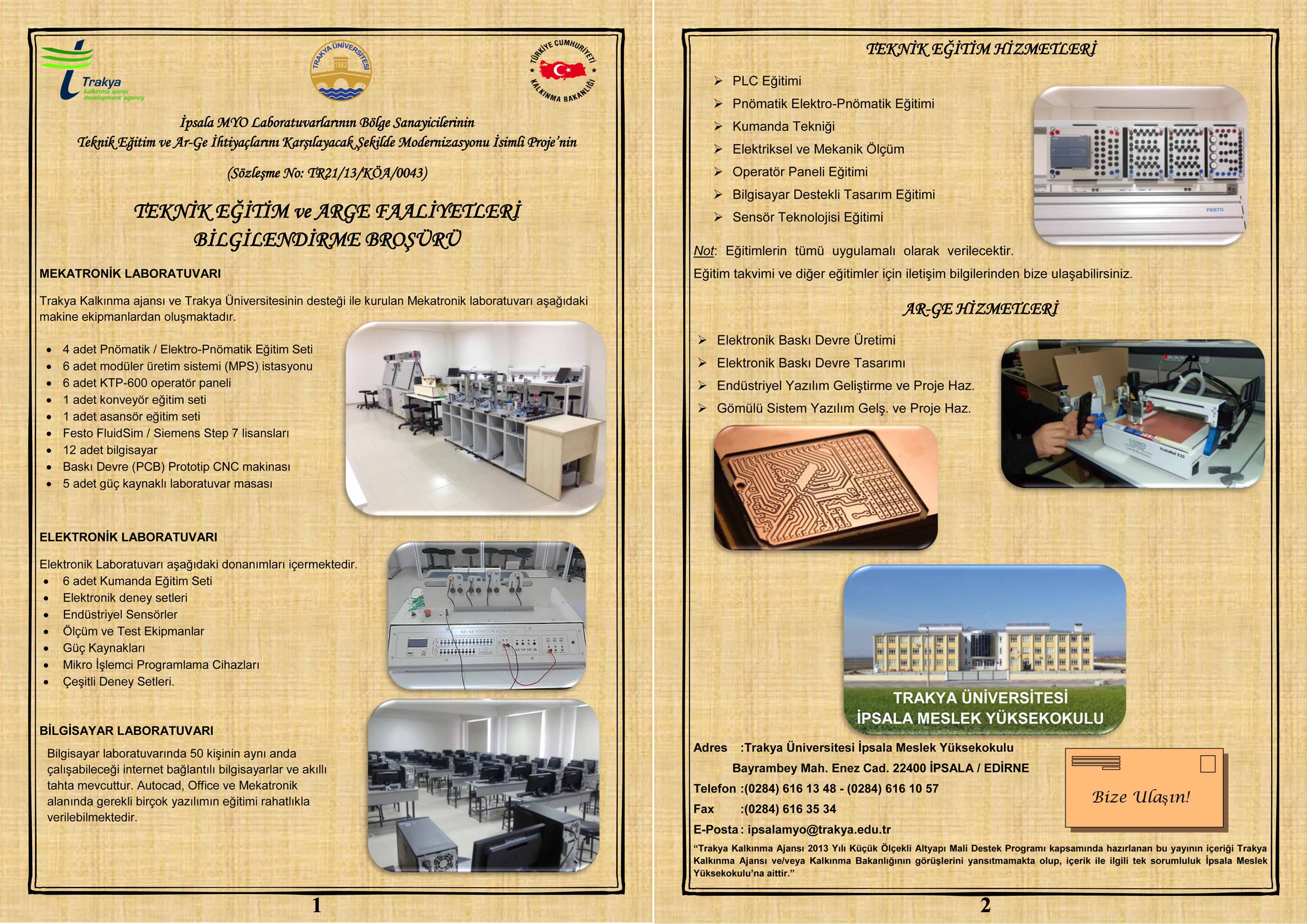 Üniversitemiz İpsala Meslek Yüksekokulu ve Kalkınma Ajansı ile yürütmekte olduğumuz proje kapsamında kurulmuş olan Mekatronik Laboratuvarının açılış töreni, 11 Şubat 2014 Salı günü saat 16.30’da İpsala Meslek Yüksekokulu’nda gerçekleştirilecektir.