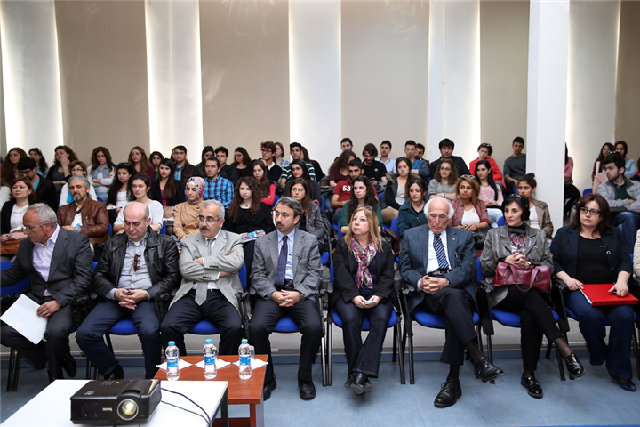 “Mimar Sinan’ı Anma Töreni” etkinliğinde Prof. Dr. Ataman Demir ve Prof. Dr. Cengiz Erzurun, Mimar Sinan’ın hayatı ve eserleriyle ilgili sunum yaptılar. Sunumlarında, Mimar Sinan’ın çocukluk döneminden başlayarak ustalık dönemine ve ortaya koyduğu eserlerinin tanıtılmasına kadar genişçe bilgi verdiler.