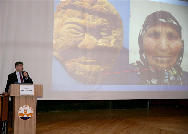Alyılmaz, Çin’den Hindistan’a kadar uzanan farklı coğrafyalardaki çeşitli arkeolojik ve antropolojik bulguları değerlendirdiği konuşmasında, çalışmalarından çeşitli fotoğraf ve tarihi belgeler paylaştı.