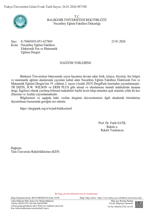 NECATİBEY EĞİTİM FAKÜLTESİ ELEKTRONİK FEN VE MATEMATİK EĞİTİMİ DERGİSİ