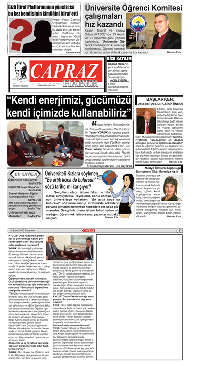 Keşan Yusuf Çapraz Uygulama Bilimler Yüksekokulu Medya İletişim topluluğu öğrencilerinin çıkardığı Çapraz Haber gazetesinin ilk sayısı yayınladı.