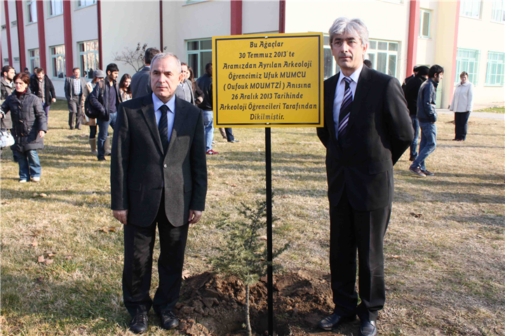 31 Temmuz 2013 tarihinde Karaağaç’ta vuku bulan elim hadisede kaybettiğimiz Edebiyat Fakültesi Arkeoloji Bölümü öğrencisi Ufuk Mumcu’nun aziz hatırasını yaşatmak üzere 26.12.2013 günü saat 11:00’da fidan dikme töreni gerçekleştirildi. Törene, Rektör Vekilimiz Prof. Dr. Süleyman Pişkin, Rektör Yardımcımız ve Edebiyat Fakültesi Dekan vekili Prof. Dr. Recep Duymaz, Dekanlar, Bölüm Başkanları, sevgili öğrencimiz Ufuk Mumcu’nun ailesi, Arkeoloji Topluluğu, Makedonya'dan misafirler ve öğrencilerimiz katıldı.