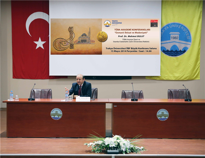 TÜBA Asosiye Üyesi, Yükseköğretim Kurulu Üyesi ve İstanbul Sabahattin Zaim Üniversitesi Rektörü Prof.Dr. Mehmet Bulut’un konuşmacı olarak katıldığı “Osmanlı İktisat ve Medeniyeti” konferansı, 14 Mayıs 2014 tarihinde İktisadi ve İdari Bilimler Fakültesi Büyük Konferans Salonu’nda gerçekleştirildi. Konferansa Rektörümüz Prof.Dr. Yener Yörük, Rektör Yardımcısı Prof.Dr. Hüseyin Sarıoğlu, akademisyen ve öğrenciler katıldı.