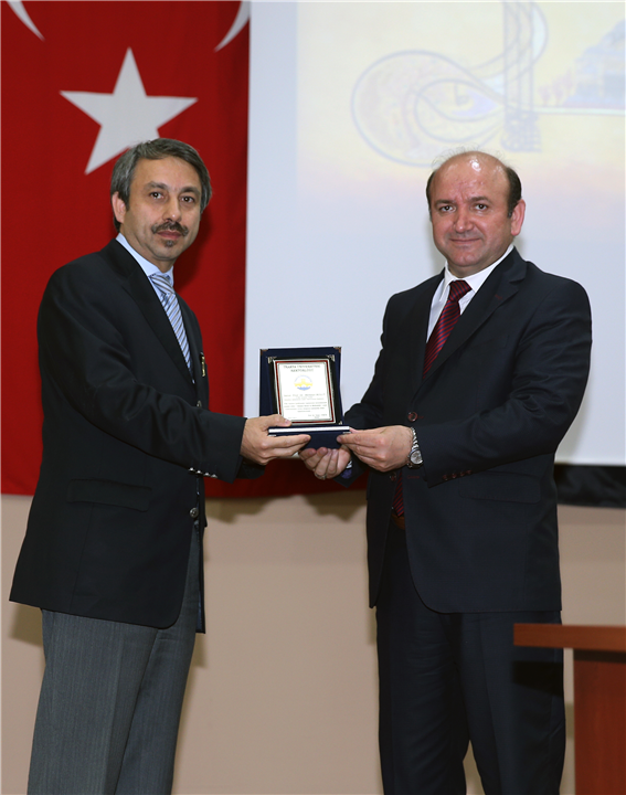 Konferans sonunda Rektörümüz Prof.Dr. Yener Yörük, Prof.Dr. Mehmet Bulut’a teşekkür ederek üniversitemizin tabağını hediye etti.