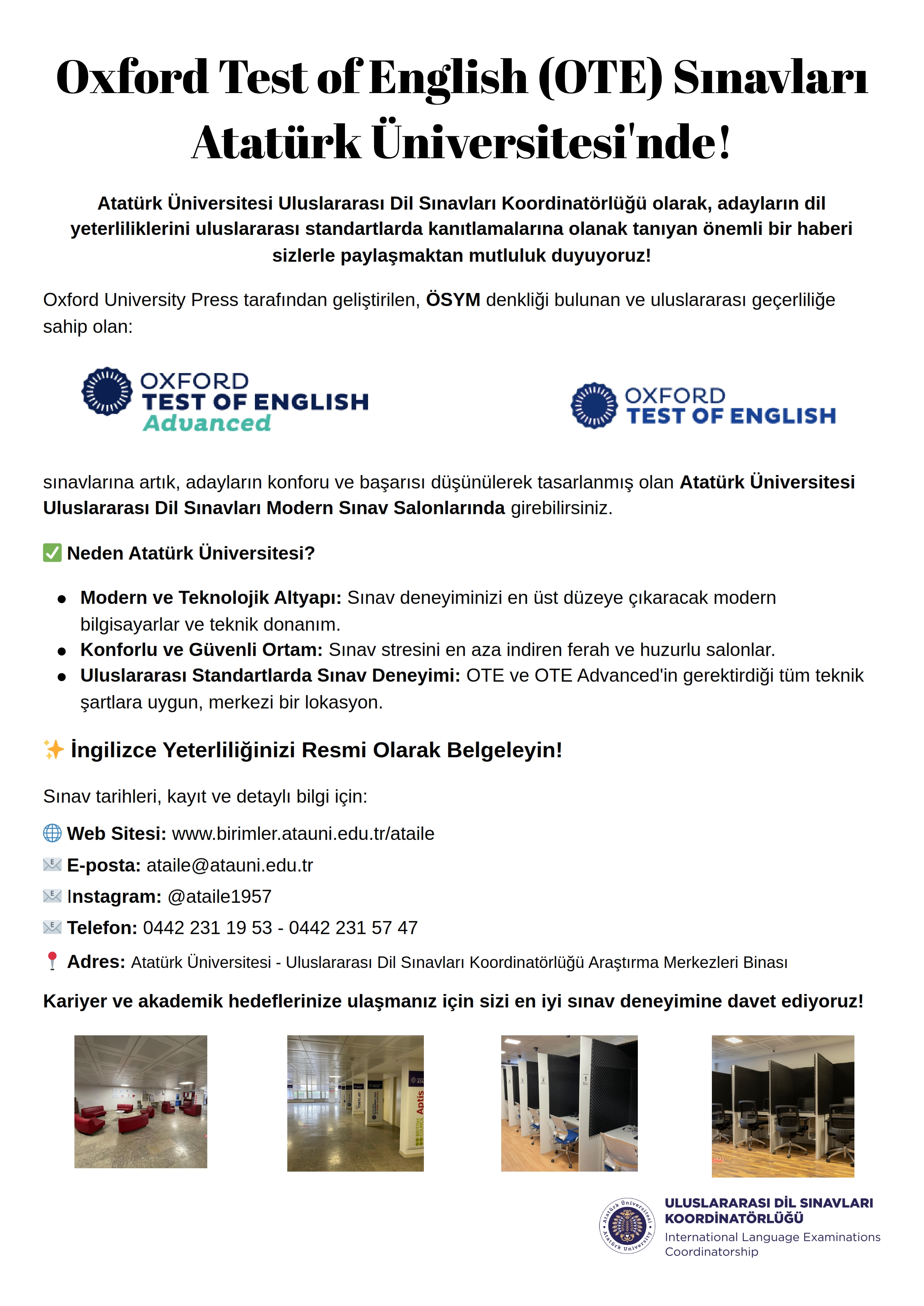 OXFORD TEST OF ENGLİSH (OTE) SINAVLARI ATATÜRK ÜNİVERSİTESİ'NDE!