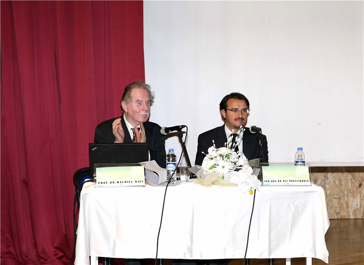 Ahmet Günşen’in açılış konuşmasının ardından sözü alan Prof.Dr. Machiel Kiel, “Kitaplarda yazılanları bir kenara bırakıp bizzat Balkanlar’ı ziyaret ettiğimizde ve oradaki alan çalışmalarında beş yüzyıl Osmanlı hâkimiyeti altındaki Balkanlar’da nelerin yapıldığını ve yapılabildiğini gözlerimizle gördüğümüzde önyargıların aslında ne kadar desteklenmeyecek argümanlar olduklarının farkına varmaktayız” diye konuştu. Kiel ayrıca, Balkanlar’dan ve Avrupa’dan derlediği elli adet görsel ile örneklendirdiği slayt sunumunda, Osmanlı’nın farklı inançlara gösterdiği hoşgörünün altını çizdi.