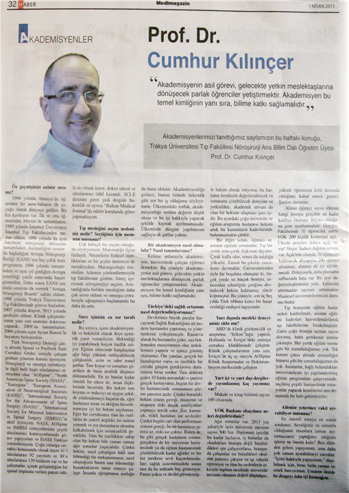 Prof. Dr. Cumhur KILINÇER Medimagazin dergisine röportaj vermiştir.