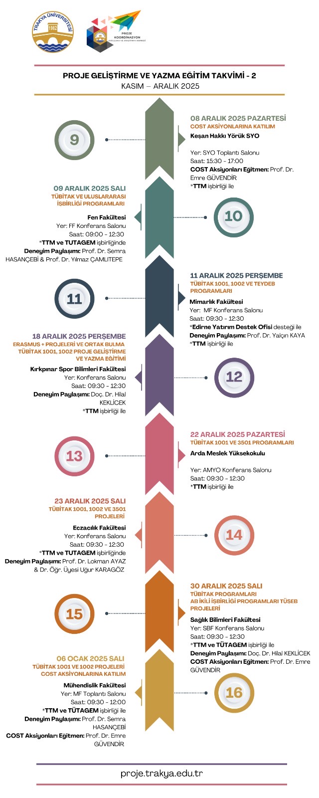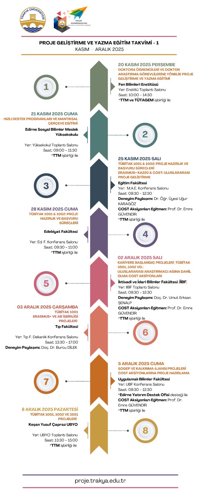 PROJE GELİŞTİRME VE YAZMA EĞİTİMİ TAKVİMİ