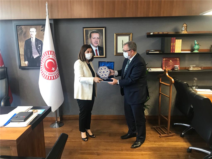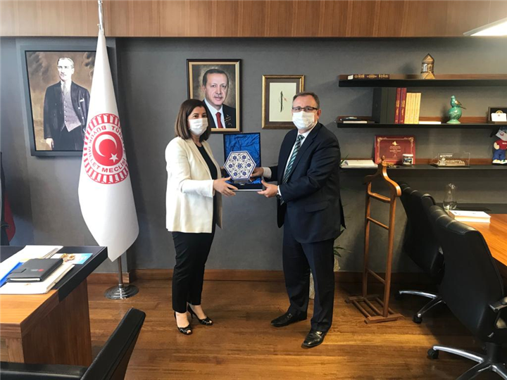 Ziyarette Rektör Prof. Dr. Erhan Tabakoğlu, Edirne Milletvekili Fatma Aksal’a hediye takdim etti.