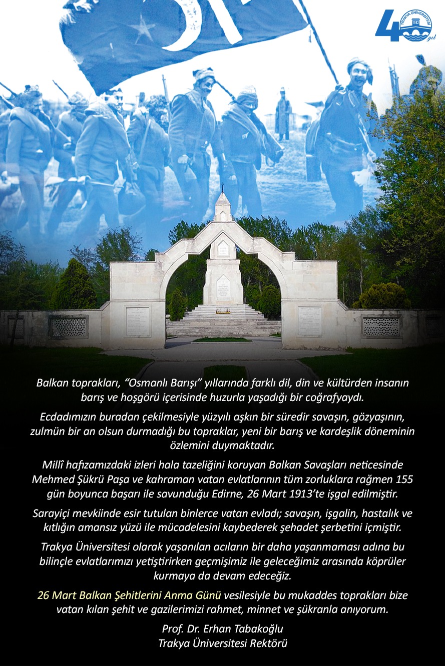 REKTÖR PROF. DR. ERHAN TABAKOĞLU'NUN 26 MART BALKAN ŞEHİTLERİNİ ANMA GÜNÜ MESAJI