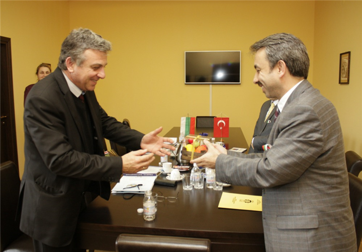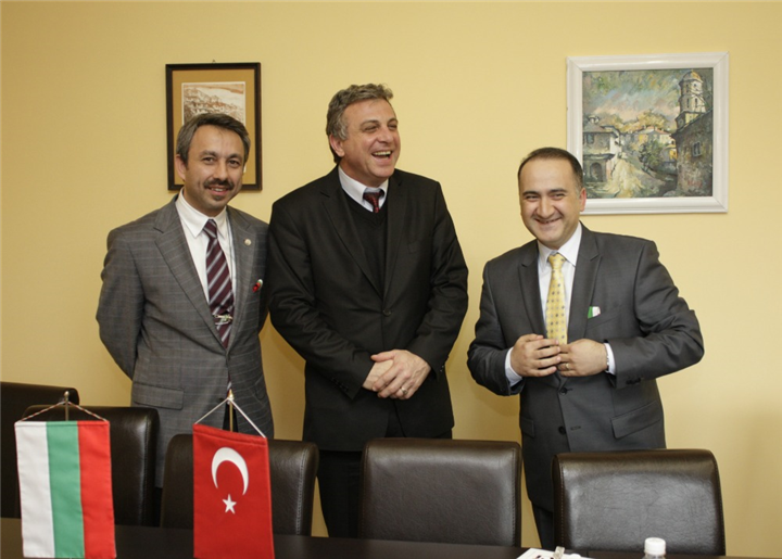 Filibe Gıda Teknolojileri Üniversitesi daveti üzerine Üniversitemiz Rektörü Prof. Dr. Yener YÖRÜK, Bulgaristan Filibe Gıda Teknolojileri Üniversitesi Rektörü Prof. Kolyo DİNKOV'u 9 Nisan 2013 tarihinde ziyaret etti. Filibe Başkonsolosu Şener CEBECİ'nin de bulunduğu görüşmede iki Üniversite arasında ortak programlar konuları görüşüldü.