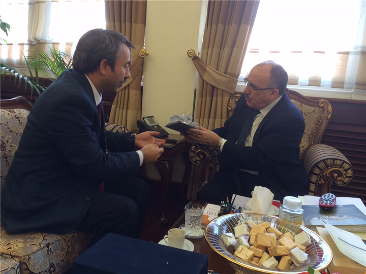 Rektör Yardımcısı ve İlahiyat Fakültesi Dekanı Prof. Dr. Hüseyin SARIOĞLU’nun da hazır bulunduğu ziyarette 07-09 Mayıs 2014 tarihlerinde gerçekleştirilecek olan “Osmanlı İlim, Düşünce ve Sanat Dünyasında Balkanlar” konulu uluslararası sempozyuma davet edilen Başbakan Yardımcısı Beşir ATALAY, Rektörümüz Prof. Dr. Yener YÖRÜK’e çalışmalarından dolayı teşekkür etti ve başarılar diledi.