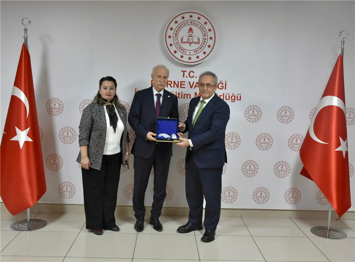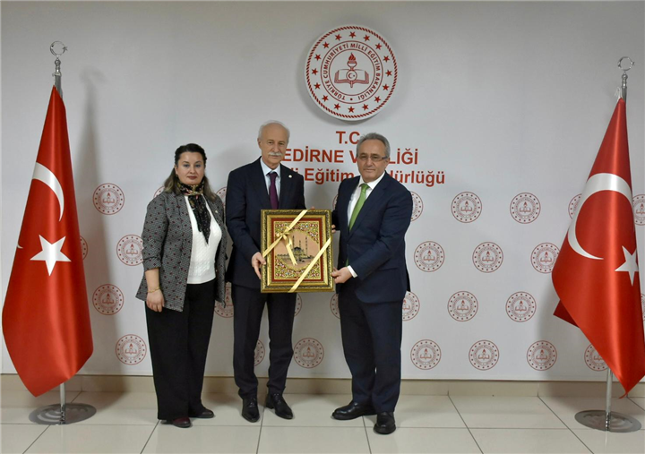 Üniversitemiz Rektörü Prof. Dr. Mustafa Hatipler, Edirne İl Milli Eğitim Müdürlüğü görevine atanan Dr. Ahmet Alireisoğlu’nu makamında ziyaret etti.