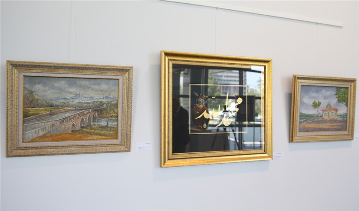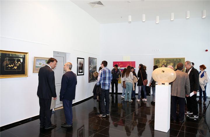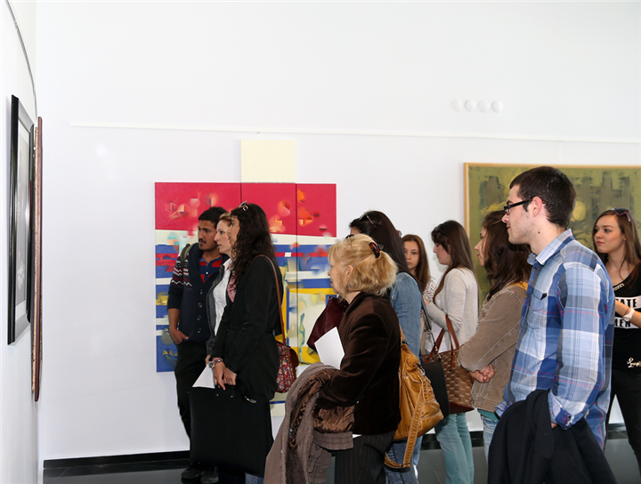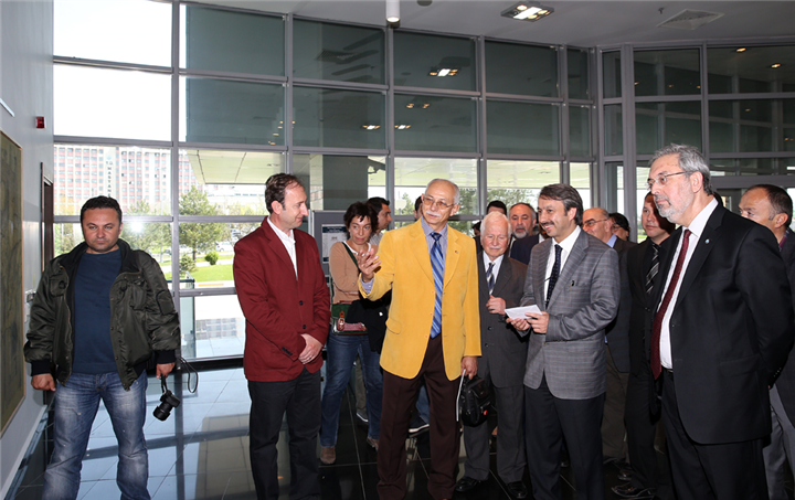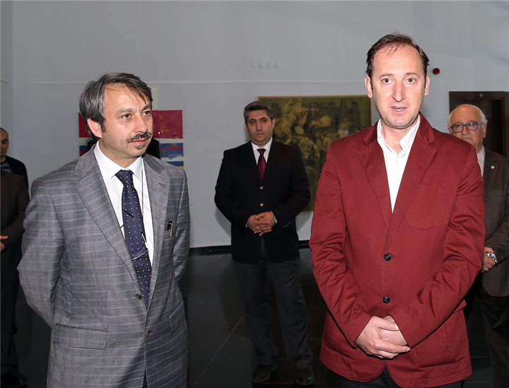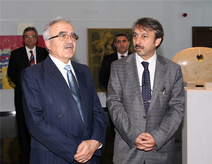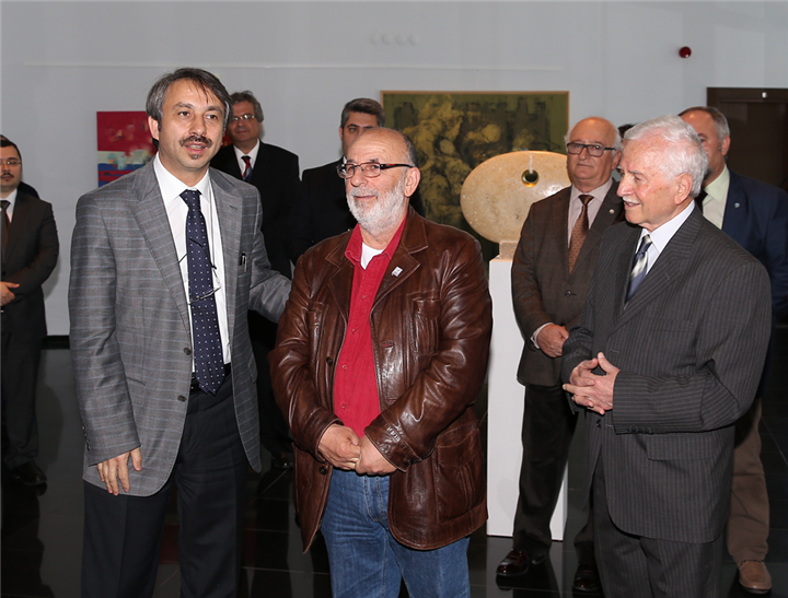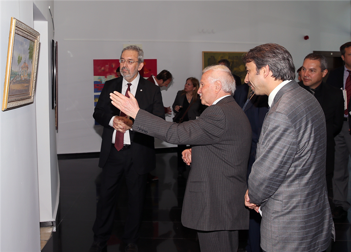 Açılıştan sonra rektörümüz galerideki sanat eserlerini gezerek sanatçılardan bilgi aldı.