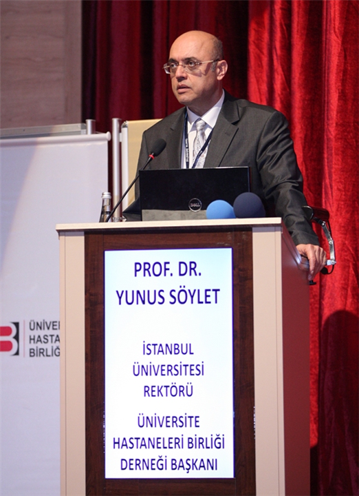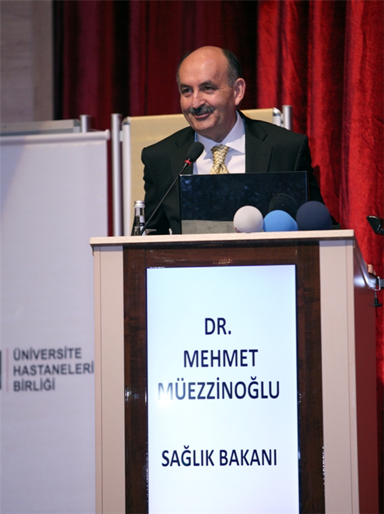 Sağlık Bakanı Dr. Mehmet MÜEZZİNOĞLU’nun “Üniversite Hastaneleri Sorun ve Çözüm Önerilerinde Gelinen Nokta” başlıklı konuşmasıyla katıldığı oturumun başkanlığını Üniversite Hastaneleri Birliği Derneği Başkanı ve İstanbul Üniversitesi Rektörü Prof. Dr. Yunus SÖYLET yaptı.