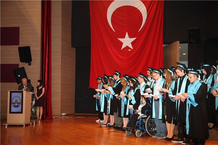 Öğrencilere mezuniyet belgelerinin verilmesi ve sağlık andının okunmasının ardından tören son buldu.