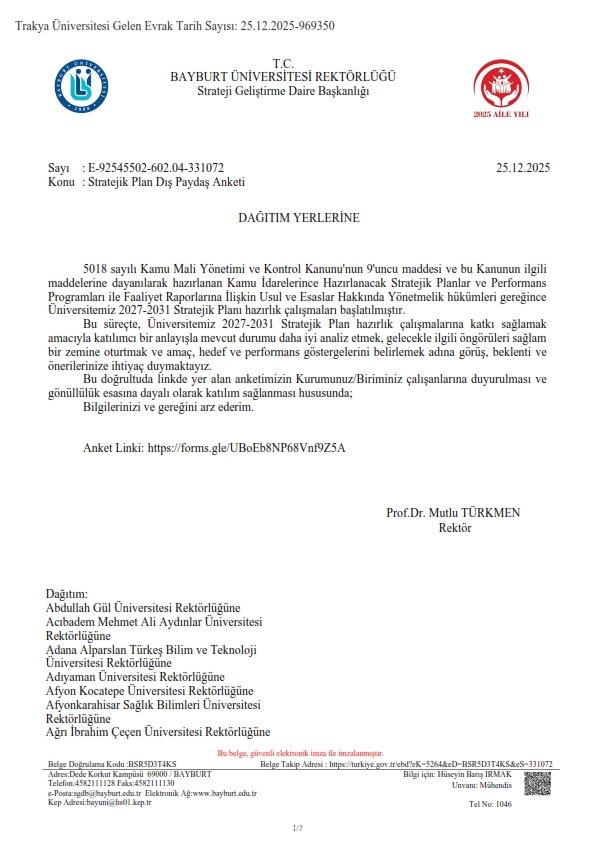 STRATEJİK PLAN DIŞ PAYDAŞ ANKETİ