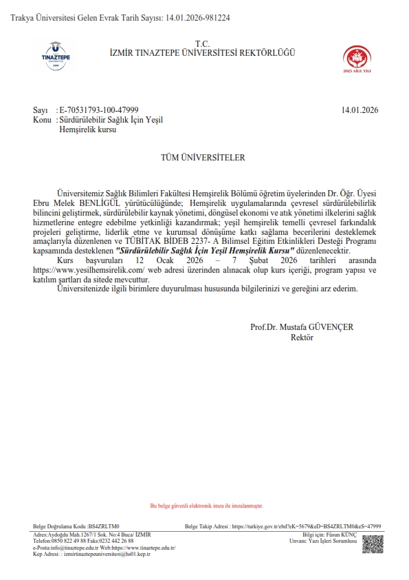 SÜRDÜRÜLEBİLİR SAĞLIK İÇİN YEŞİL HEMŞİRELİK KURSU