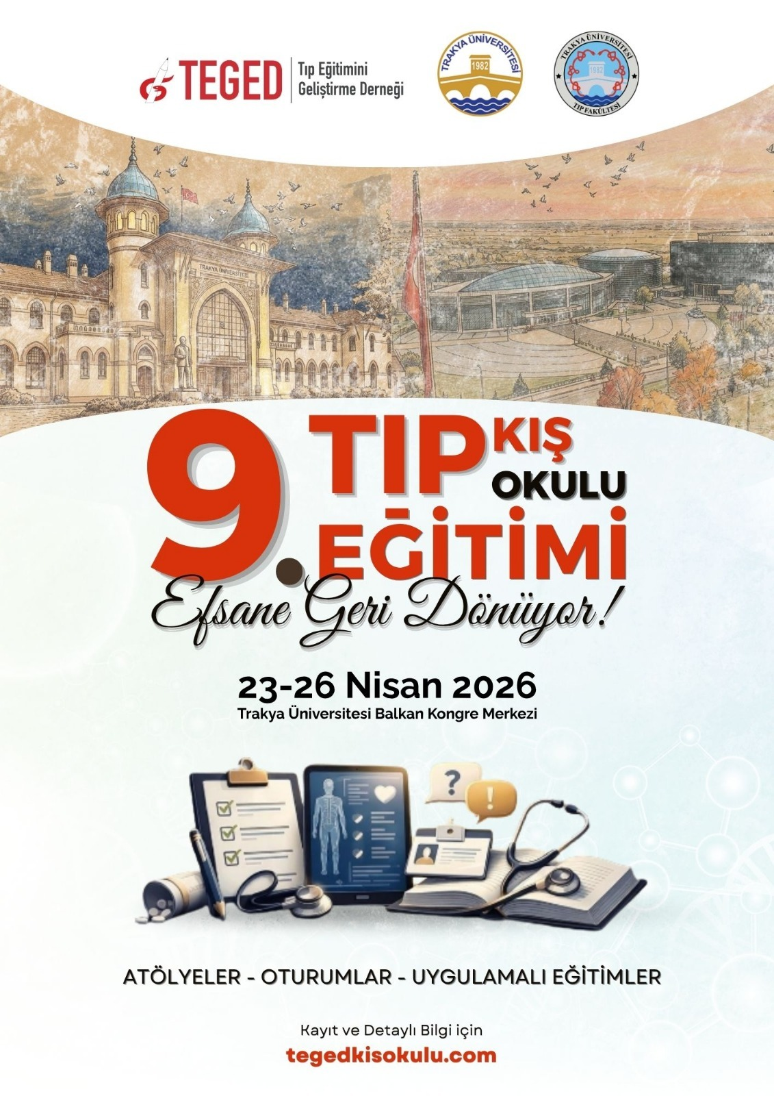 Tıp Eğitimi Geliştirme Derneği (TEGED) iş birliğiyle düzenlenen ve Trakya Üniversitesi Tıp Fakültesi’nin ev sahipliği yaptığı TEGED Kış Okulu, 23–26 Nisan 2026 tarihleri arasında Edirne’de Balkan Kongre Merkezi’nde yapılacak.