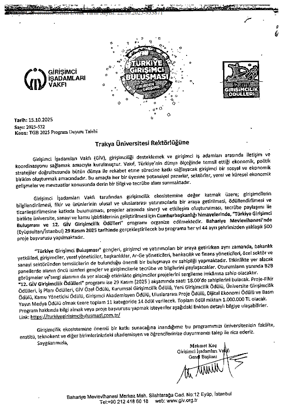 TGB 2025 PROGRAM DUYURU TALEBİ