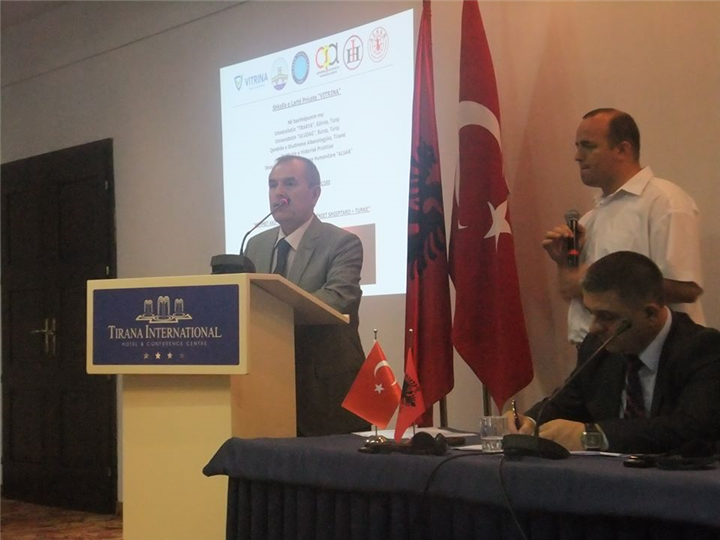 Arnavutluk’un başkenti Tiran’da bulunan Vitrina Üniversitesi, Trakya Üniversitesi, Uludağ Üniversitesi, Tiran Arnavutluk Araştırmaları Merkezi ve Priştine Tarih Enstitüsü’nün ortaklığıyla “Mehmet Akif Ersoy ve Arnavutluk –Türk İşbirliği Konferansı düzenledi. Konferans, 20 Haziran Perşembe günü saat: 10’da Vitrina Üniversitesi’nde Mehmet Akif Ersoy Salonu’nun açılmasıyla başladı. Açılış kurdelesini, Vitrina Üniversitesi Rektörü Pof. Dr. Mario Kedhi ile üniversitemiz Rektör Yardımcısı Prof. Dr. Recep Duymaz birlikte kestiler. Ardından International Hotel salonlarında oturumlara geçildi. Sunulan bildirilerde Mehmet Akif Ersoy ve Arnavutluk – Türkiye arasındaki münasebetler üzerinde duruldu. Üniversitemiz Rektör Yardımcısı Prof. Dr. Recep Duymaz, “Mehmet Akif Ersoy’un Eserlerinde Arnavutluk’tan Gelen İzler” başlıklı bildirisini sundu.