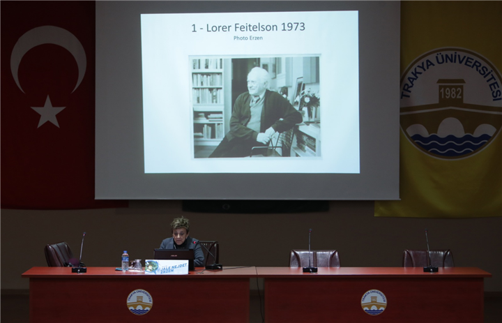 Trakya Üniversitesi Güzel Sanatlar Fakültesi bünyesinde Doç. Dr. Mustafa Haykır’ın organize ettiği ve TÜBAP tarafından desteklenen “Sanat Söyleşileri” etkinliğine, Prof. Dr. Jale Nejdet Erzen konuk oldu. “İlk Modernistlerden Ressam Lorser Feitelson” konusunun işlendiği söyleşi, İktisadi ve İdari Bilimler Fakültesi Prof. Dr. Fehmi Yıldız Konferans Salonu’nda gerçekleştirildi. Programa Güzel Sanatlar Fakültesi Dekanı Prof. Melihat Tüzün, öğretim elemanları, öğrenciler ve Edirneli sanatseverler katıldı.